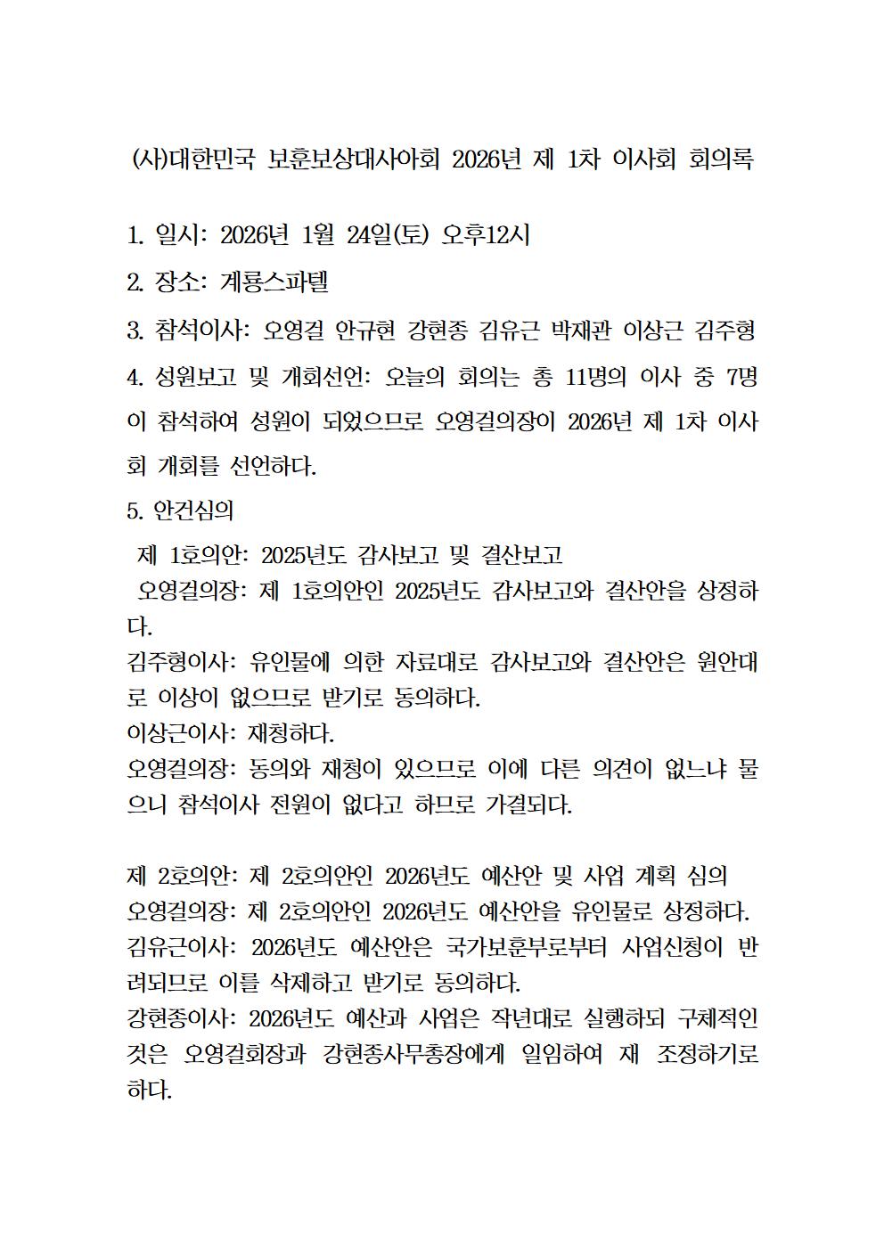 2026년 이사회회의록